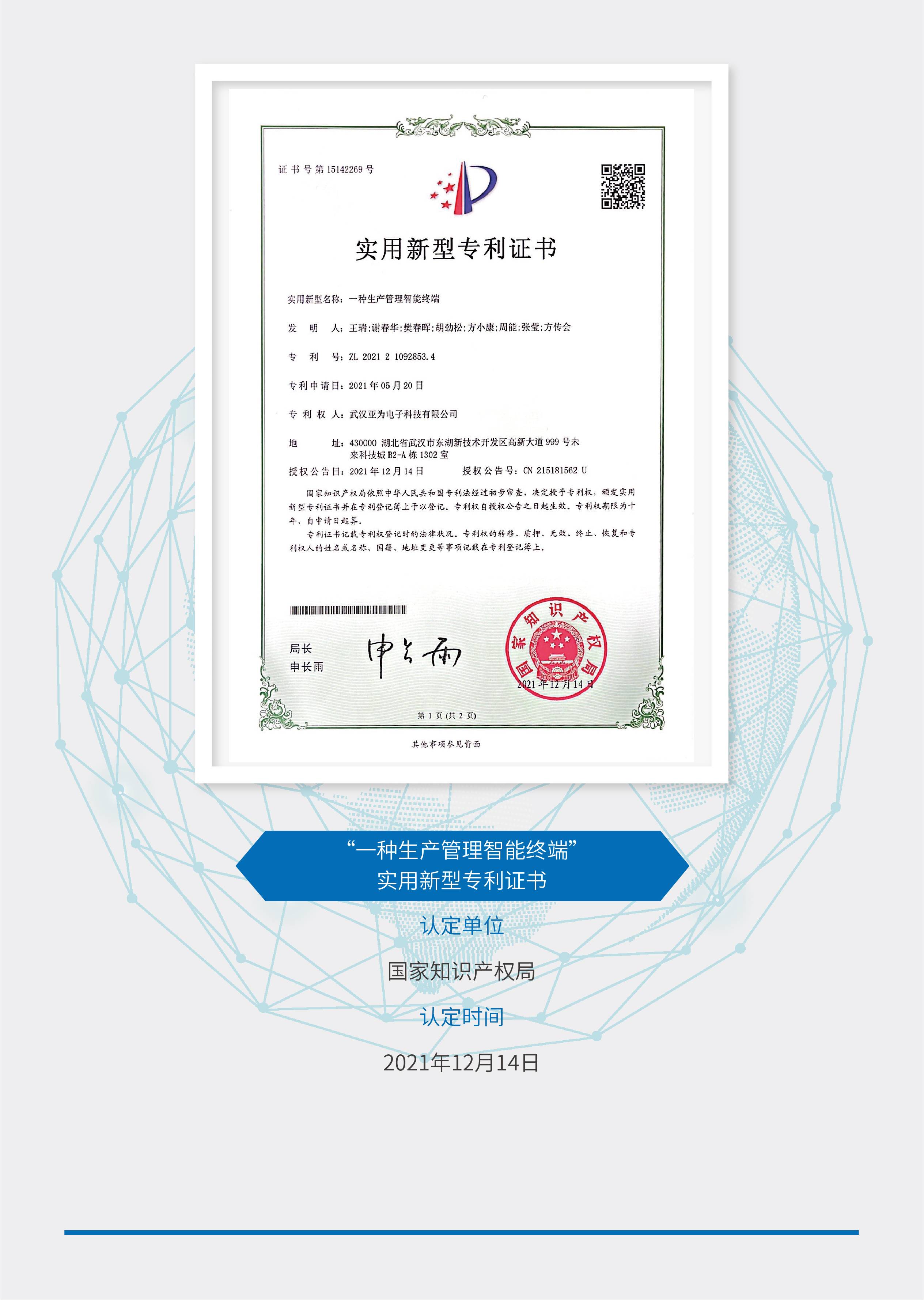 “一種生產(chǎn)管理智能終端” 實(shí)用新型專利證書