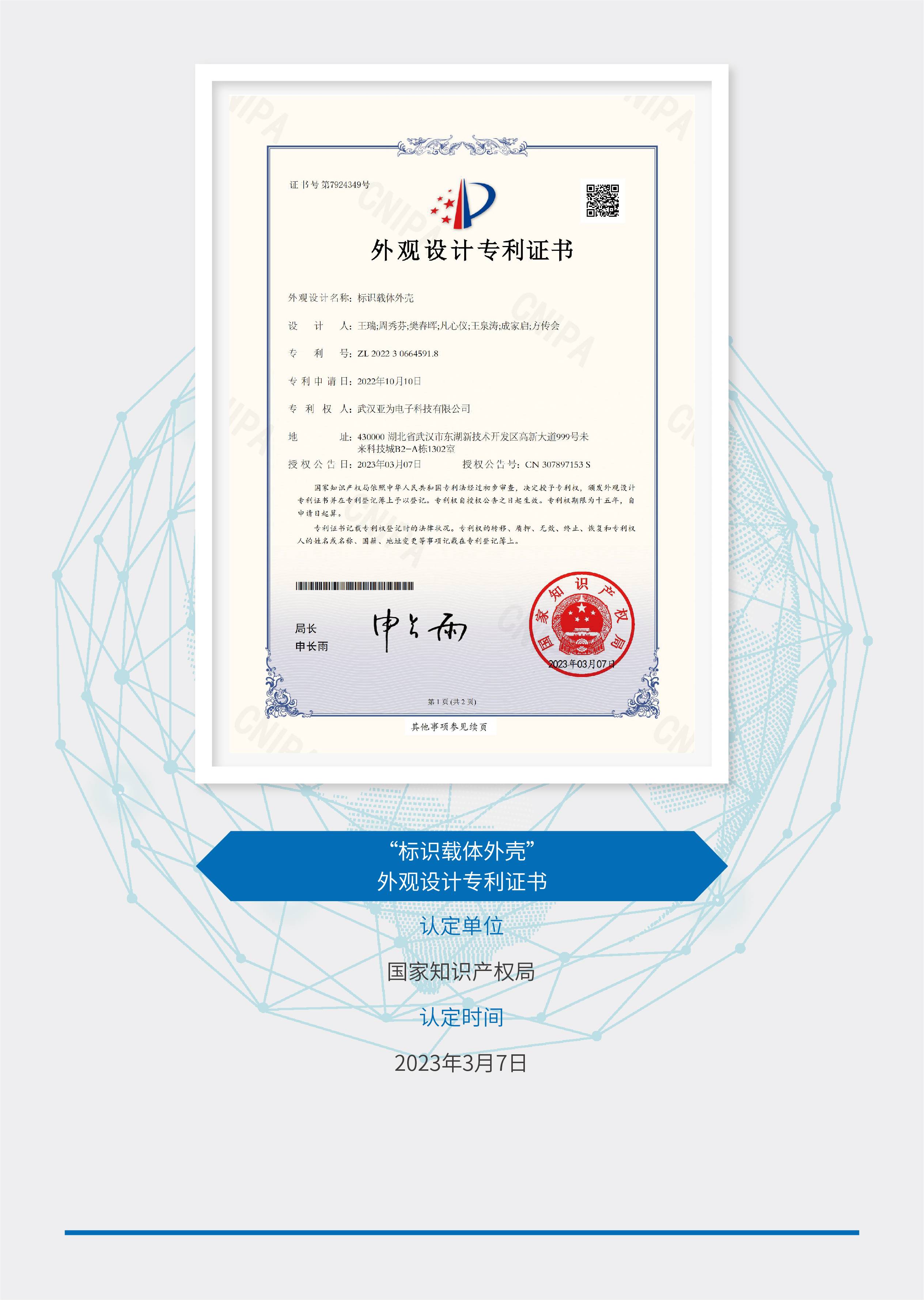 “標(biāo)識(shí)載體外殼”外觀設(shè)計(jì)專利證書