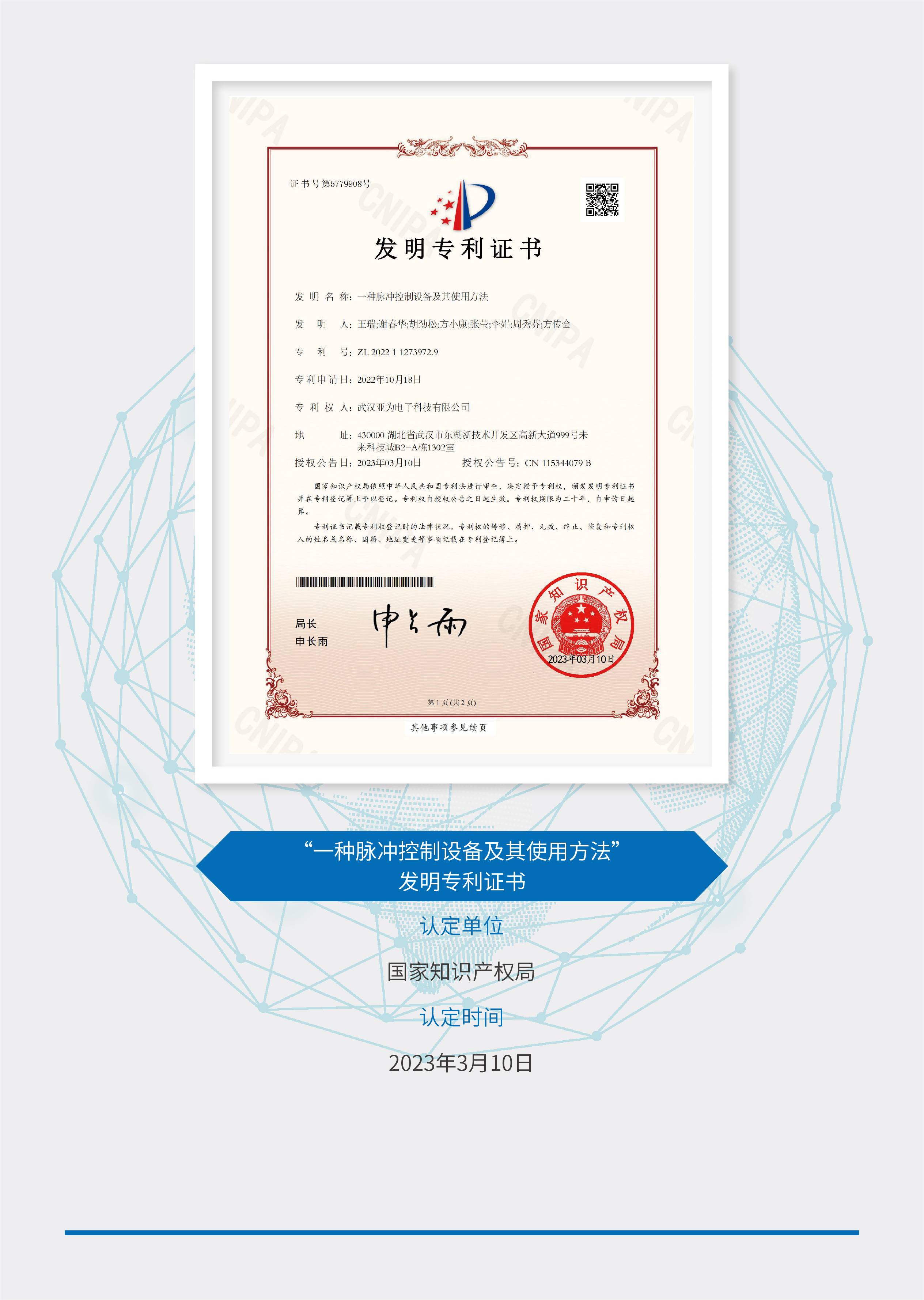 “一種脈沖控制設(shè)備及其使用方法”發(fā)明專利證書