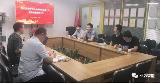 6月3日,武漢市中小企業(yè)發(fā)展促進(jìn)中心副主任王鵬和武漢中創(chuàng)融科科技股份有限公司方正總經(jīng)理一行4人,到亞為智能指導(dǎo)調(diào)研。亞為智能總經(jīng)理王瑞進(jìn)行了接待,對(duì)亞為智能產(chǎn)品思維,應(yīng)用場(chǎng)景,公司文化等方面進(jìn)行了匯報(bào)。