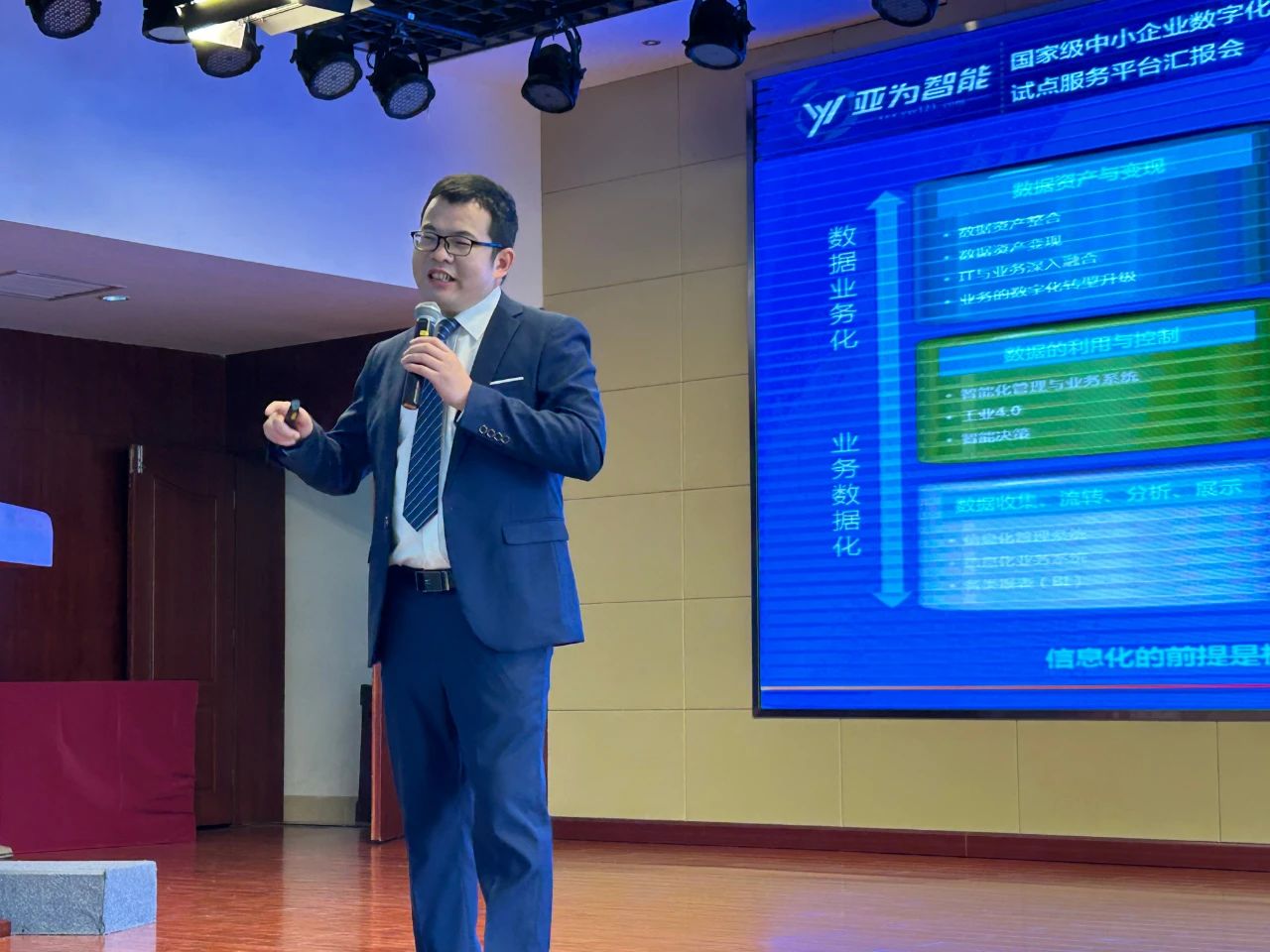 王瑞結(jié)合亞為入選國(guó)家級(jí)中小企業(yè)數(shù)字化試點(diǎn)服務(wù)平臺(tái)的核心產(chǎn)品——T-Cos平臺(tái),詳細(xì)匯報(bào)了亞為解決方案,7S+IDS+UMS三大核心技術(shù),以及服務(wù)企業(yè)數(shù)字化亞為在企業(yè)側(cè)、行業(yè)側(cè)、產(chǎn)業(yè)側(cè)的思考與布局。受到現(xiàn)場(chǎng)專家和用戶的熱烈反響。緊隨其后的現(xiàn)場(chǎng)簽約儀式,亞為與中國(guó)信息通信研究院工業(yè)互聯(lián)網(wǎng)與物聯(lián)網(wǎng)研究所、中電長(zhǎng)城網(wǎng)際、大數(shù)據(jù)協(xié)同安全國(guó)家工程實(shí)驗(yàn)室、中信科移動(dòng)、湖北廣電玖云大數(shù)據(jù),以及多家供應(yīng)保障單位,進(jìn)行了現(xiàn)場(chǎng)簽約。王瑞表示“亞為作為國(guó)家中小企業(yè)數(shù)字化轉(zhuǎn)型試點(diǎn)平臺(tái)單位,一方面深感責(zé)任重大,另一方面也在緊跟政策,在主管單位的指導(dǎo)下,攜手各方共同推進(jìn)落實(shí)。亞為將深入現(xiàn)場(chǎng),靈活調(diào)整,切實(shí)地為企業(yè)提供高效的數(shù)字化服務(wù),精心精進(jìn),打造一批“小燈塔”企業(yè),為各級(jí)部門、工信部、國(guó)家交出滿意的成果?!?/span>圖 ▏亞為產(chǎn)品負(fù)責(zé)人樊春暉發(fā)布亞為十大解決方案