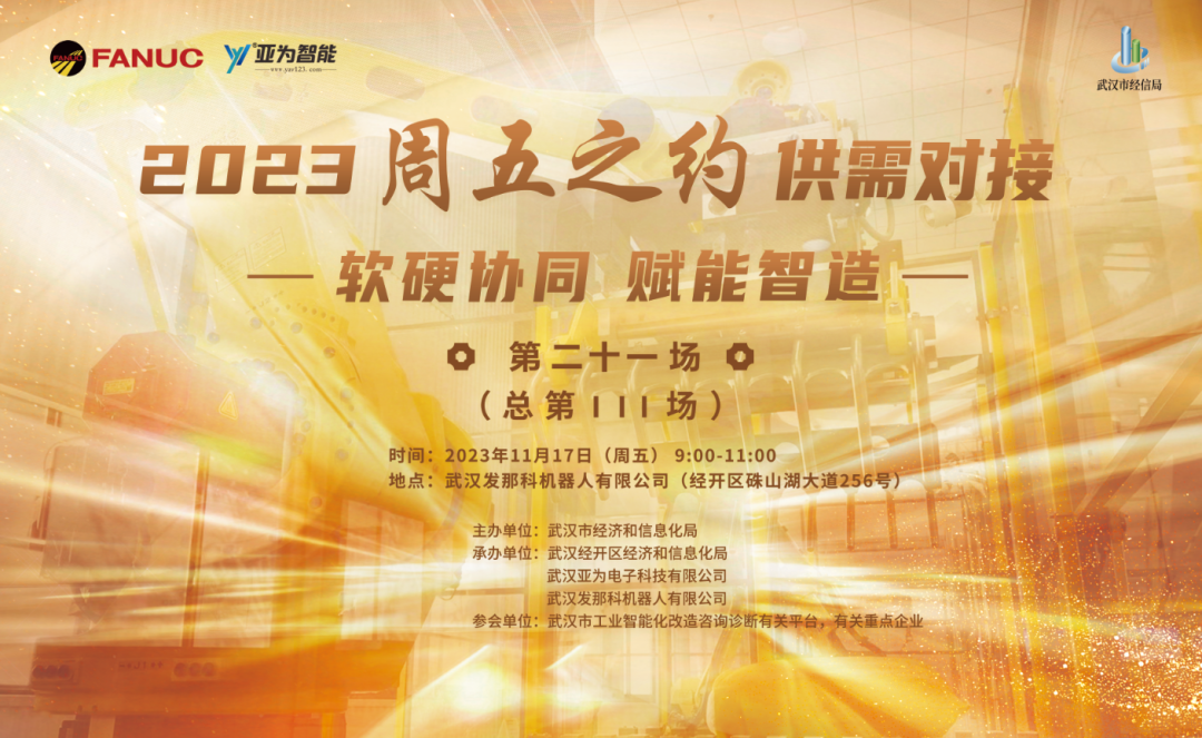 11月17日上午,市經(jīng)濟(jì)和信息化局在武漢經(jīng)濟(jì)開發(fā)區(qū)武漢發(fā)那科機(jī)器人有限公司舉辦了第111場“周五之約”工業(yè)技改示范推廣活動(dòng)。來自武漢市和經(jīng)開區(qū)的經(jīng)信部門相關(guān)負(fù)責(zé)人,教育機(jī)構(gòu)和金融機(jī)構(gòu)負(fù)責(zé)人,數(shù)字化轉(zhuǎn)型咨詢診斷平臺(tái)和企業(yè)的專家,以及60余家重點(diǎn)規(guī)上工業(yè)企業(yè)負(fù)責(zé)人走進(jìn)發(fā)那科華中研發(fā)基地參觀交流。 本場活動(dòng)由武漢經(jīng)開區(qū)經(jīng)濟(jì)和信息化局、武漢發(fā)那科機(jī)器人有限公司(以下簡稱“武漢發(fā)那科”)和武漢亞為電子科技有限公司(以下簡稱“亞為”)共同承辦,旨在交流重點(diǎn)行業(yè)軟硬件智能化解決方案,延長工業(yè)技改服務(wù)鏈條,開展供需對(duì)接,推動(dòng)傳統(tǒng)產(chǎn)業(yè)改造升級(jí)和新興產(chǎn)業(yè)發(fā)展壯大。