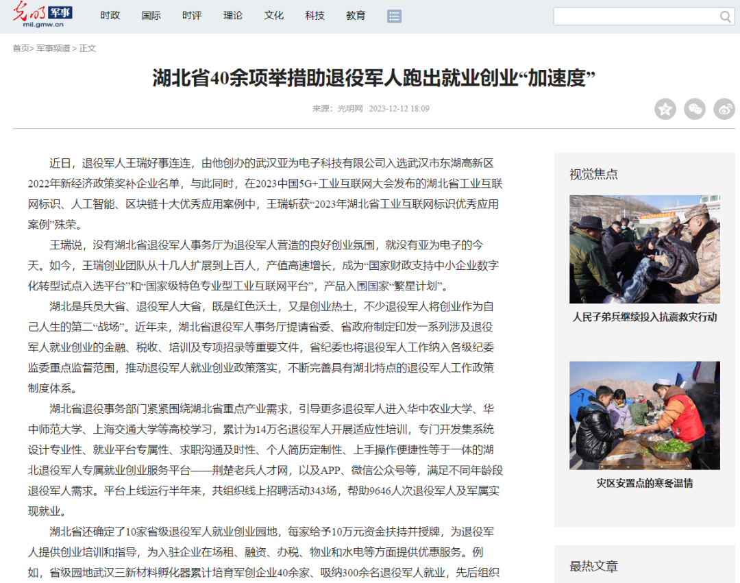 近日解放軍報、新華網(wǎng)、光明網(wǎng)等多家國家級媒體關(guān)注亞為王瑞創(chuàng)業(yè)事跡。
