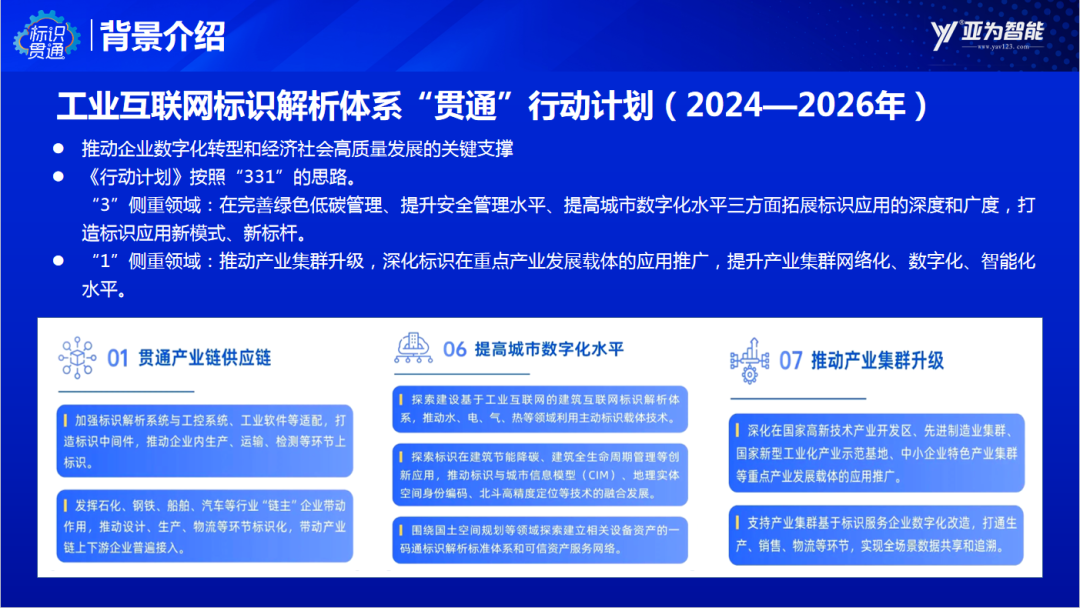 王瑞在工業(yè)互聯(lián)網(wǎng)標(biāo)識(shí)解析體系“貫通”行動(dòng)計(jì)劃標(biāo)識(shí)應(yīng)用分享中表示,推動(dòng)標(biāo)識(shí)解析體系由“建”到“用”,拓展在工業(yè)領(lǐng)域的應(yīng)用廣度和深度,促進(jìn)標(biāo)識(shí)解析體系向經(jīng)濟(jì)社會(huì)各領(lǐng)域廣泛推廣是行動(dòng)計(jì)劃的要義所在。《行動(dòng)計(jì)劃》按照“331”的思路。“3”側(cè)重在完善綠色低碳管理、提升安全管理水平、提高城市數(shù)字化水平三方面拓展標(biāo)識(shí)應(yīng)用的深度和廣度,打造標(biāo)識(shí)應(yīng)用新模式、新標(biāo)桿。“1”側(cè)重推動(dòng)產(chǎn)業(yè)集群升級(jí),深化標(biāo)識(shí)在重點(diǎn)產(chǎn)業(yè)發(fā)展載體的應(yīng)用推廣,提升產(chǎn)業(yè)集群網(wǎng)絡(luò)化、數(shù)字化、智能化水平。